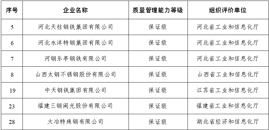 關于公布首批質量管理能力高等級企業(yè)名單的通知