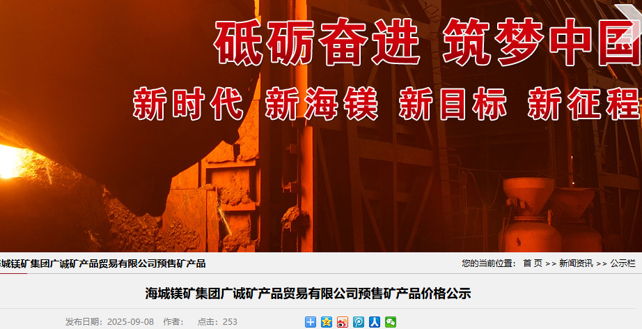 海城鎂礦集團(tuán)廣誠(chéng)礦產(chǎn)品貿(mào)易有限公司預(yù)售礦產(chǎn)品價(jià)格公示