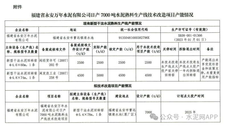9月5日,福建省工信廳發(fā)布“關于撤銷福建省永安萬年水泥有限公司日產7000噸水泥熟料生產線技術改造項目方案的公告”。