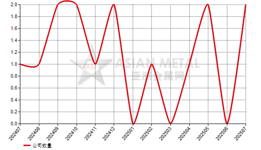 2025年1-7月,2家生產(chǎn)商累計停產(chǎn)3個月,平均停產(chǎn)2個月,累計減產(chǎn)21,666.67公噸。