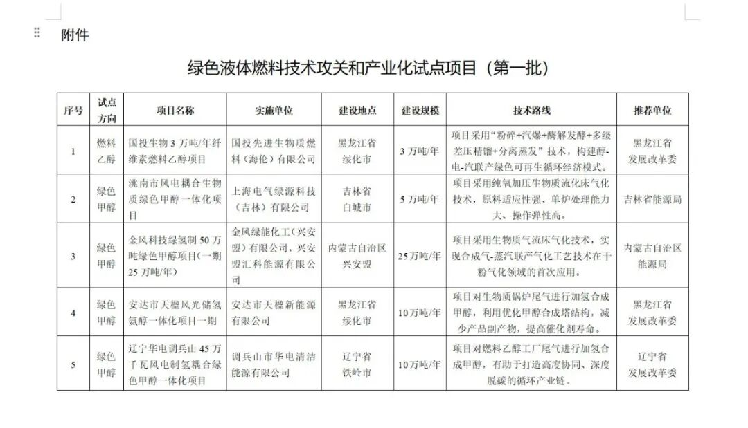 附件:綠色液體燃料技術攻關和產業(yè)化試點項目(第一批)