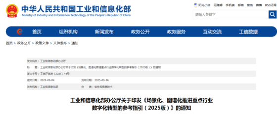 9月16日,工業(yè)和信息化部發(fā)布關(guān)于印發(fā)《場景化、圖譜化推進(jìn)重點(diǎn)行業(yè)數(shù)字化轉(zhuǎn)型的參考指引(2025版)》的通知。