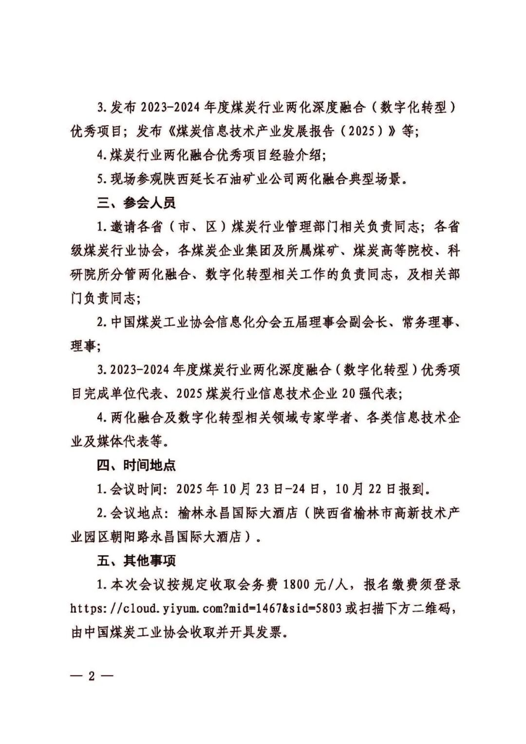 中國煤炭工業(yè)協(xié)會關(guān)于召開2025煤炭行業(yè)兩化深度融合推進(jìn)現(xiàn)場會的通知