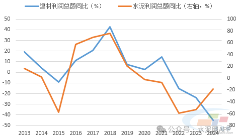 從近12年數(shù)據(jù)看,水泥行業(yè)利潤總額同比走勢(shì)與建材整體基本一致,2022-2024年,水泥行業(yè)利潤大幅下滑,是拖累建材行業(yè)連續(xù)三年持續(xù)下降的主要因素,因此水泥實(shí)現(xiàn)穩(wěn)增長(zhǎng)對(duì)整個(gè)建材行業(yè)穩(wěn)增長(zhǎng)至關(guān)重要。