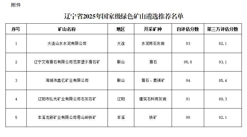 附件:遼寧省2025年國家級(jí)綠色礦山遴選推薦名單