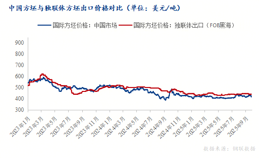 圖一:2023-2025年中國鋼坯與獨聯(lián)體方坯出口價格對比