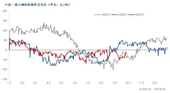 圖三:江蘇-唐山鋼坯價差對比(南北價差對比)
