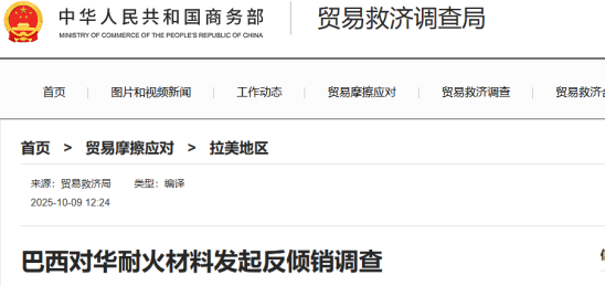2025年9月30日,巴西外貿(mào)秘書(shū)處在官方日?qǐng)?bào)發(fā)布2025年第75號(hào)公告,決定應(yīng)巴西協(xié)會(huì)Associa??o Brasileira de Fabricantes de Refratários(Abrafar)申請(qǐng),對(duì)進(jìn)口自中國(guó)的耐火材料(葡萄牙語(yǔ):refratários básicos e n?o básicos)啟動(dòng)反傾銷(xiāo)調(diào)查。涉案產(chǎn)品的南共市稅號(hào)為6815.91.10、6815.91.90、6815.99.19、6815.99.90、6902.10.18、6902.10.19、6902.10.90、6902.20.10、6902.20.91、6902.20.99和6902.90.90。本案傾銷(xiāo)調(diào)查期為2023年10月至2024年9月,損害分析期為2019年10月至2024年9月。