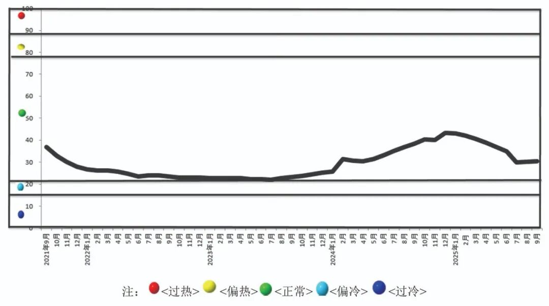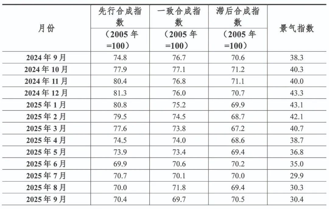 中國有色金屬產(chǎn)業(yè)月度景氣指數(shù)監(jiān)測模型結果顯示,2025年9月份,中國有色金屬產(chǎn)業(yè)景氣指數(shù)為30.4,較上月上升0.1個百分點;先行指數(shù)70.4,較上月上升0.4個百分點;一致指數(shù)為69.7,較上月下降2.1個百分點。