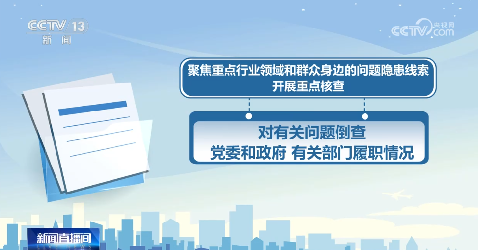 應(yīng)急管理部安全生產(chǎn)綜合協(xié)調(diào)司司長(zhǎng) 汪崇鮮:主要采取座談問(wèn)詢(xún)、受理群眾反映和職工報(bào)告問(wèn)題隱患線(xiàn)索、明察暗訪(fǎng)、調(diào)閱重點(diǎn)資料、約談會(huì)商、個(gè)別談話(huà)、專(zhuān)家指導(dǎo)服務(wù)等方式進(jìn)行。重點(diǎn)聚焦“五個(gè)嚴(yán)查”,分別是:嚴(yán)查黨政領(lǐng)導(dǎo)干部履行安全生產(chǎn)責(zé)任制情況、嚴(yán)查有關(guān)部門(mén)安全生產(chǎn)履職情況、嚴(yán)查安全生產(chǎn)治本攻堅(jiān)三年行動(dòng)推進(jìn)情況、嚴(yán)查年內(nèi)發(fā)生重特大事故及較大事故明顯上升的行業(yè)領(lǐng)域、嚴(yán)查群眾反映和職工報(bào)告的重要問(wèn)題隱患線(xiàn)索。