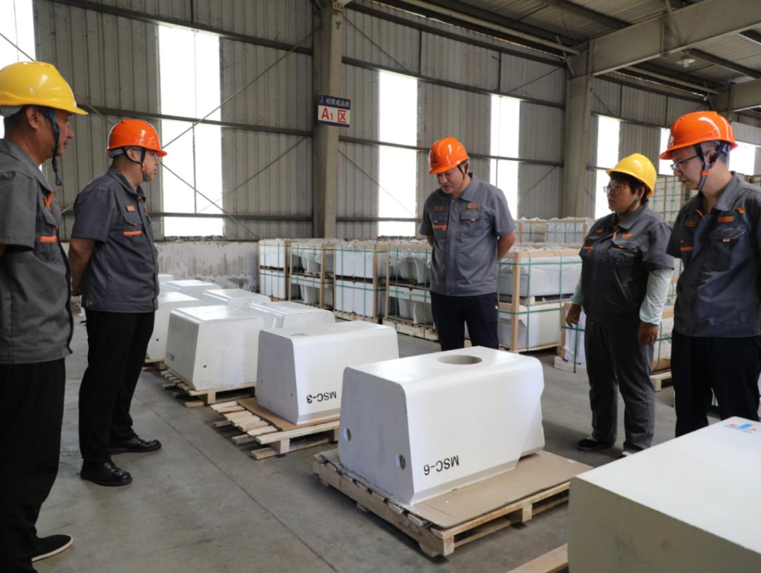 6月16日,中鋼洛耐黨委書記、董事長熊建,常務(wù)副總經(jīng)理耿可明,副總經(jīng)理張利新深入預制件作業(yè)區(qū),針對第三代焦爐爐門磚研制成果及應用開展專項調(diào)研。