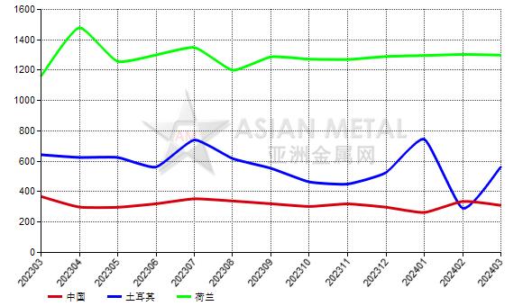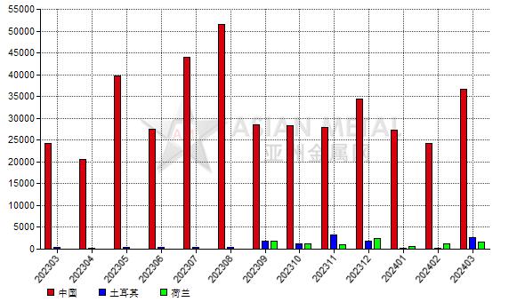 2024年3月,印度鎂砂前三大進(jìn)口來源國為中國、土耳其和荷蘭。